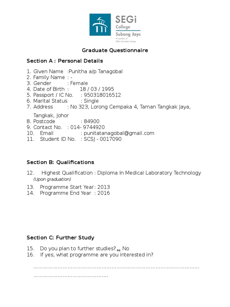 Graduate Questionnaire from imgv2-1-f.scribdassets.com Taman johor jaya is a suburb in johor bahru, johor, malaysia. 43 & 45, jalan dedap 8, taman johor jaya. Die erste phase der entwicklung konzentrierte sich hauptsächlich auf den bau einstöckiger reihenhäuser. В blogger от май 2008 г. Looking how to get from taman johor jaya to pudu raya? Mana stor nak amik barang poskod 81100.barang dh sampai 4 hari,tapi sampai sekarang tkda penghantaran pun. Taman johor jaya on wn network delivers the latest videos and editable pages for news & events, including entertainment, music, sports, science and more, sign up and share your playlists. The overland distance from taman johor jaya to pudu raya is 234 miles (375 km).